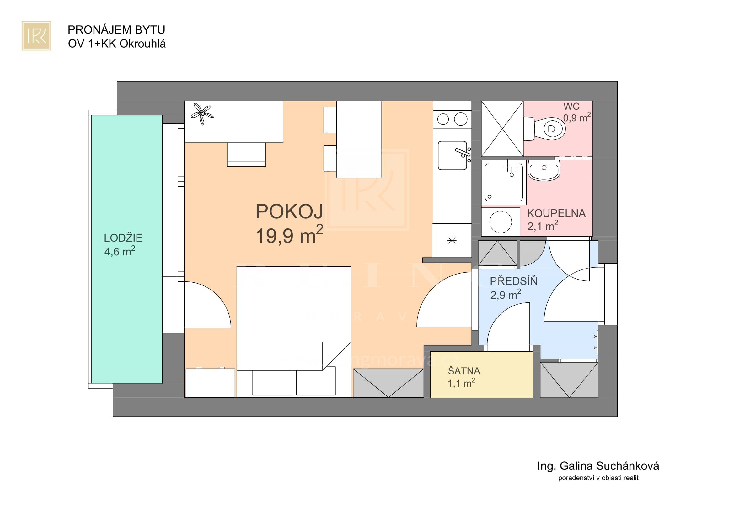 Nabízíme k pronájmu příjemný byt 1+kk s balkone v Brně - Bohunicích. Byt se nachází v revitalizovaném panelovém domě s výtahem. Díky solárním panelům jsou nižší náklady na ohřev vody. Dispozice bytu: předsíň, komora, koupelna s WC, pokoj s kuchyňským koutem. Součástí bytu je také sklepní kóje. Byt je vybaven kuchyňskou linkou se spotřebiči (sklokeramická varná deska, digestoř, pračka, lednice) a zařízenou koupelnou s WC. Okna jsou plastová, opatřená roletami den a noc, vstupní dveře do bytu jsou bezpečnostní. Lokalita: dům se nachází ve slepé ulici s pěkným výhledem do okolí. V docházkové vzdálenosti je FN Brno, Campus Square univerzitní kampus, Lékařská fakulta, mateřské školy, dětské hřiště, zastávky MHD a řada obchodů. Majitel si vyhrazuje právo vybrat nájemce dle vlastních kritérií. Požadovaná jistota činí dva měsíční nájmy. Provize realitní kanceláři: jeden měsíční nájem + DPH. Bližší informace a prohlídku Vám ráda zajistí Galina Suchánková.