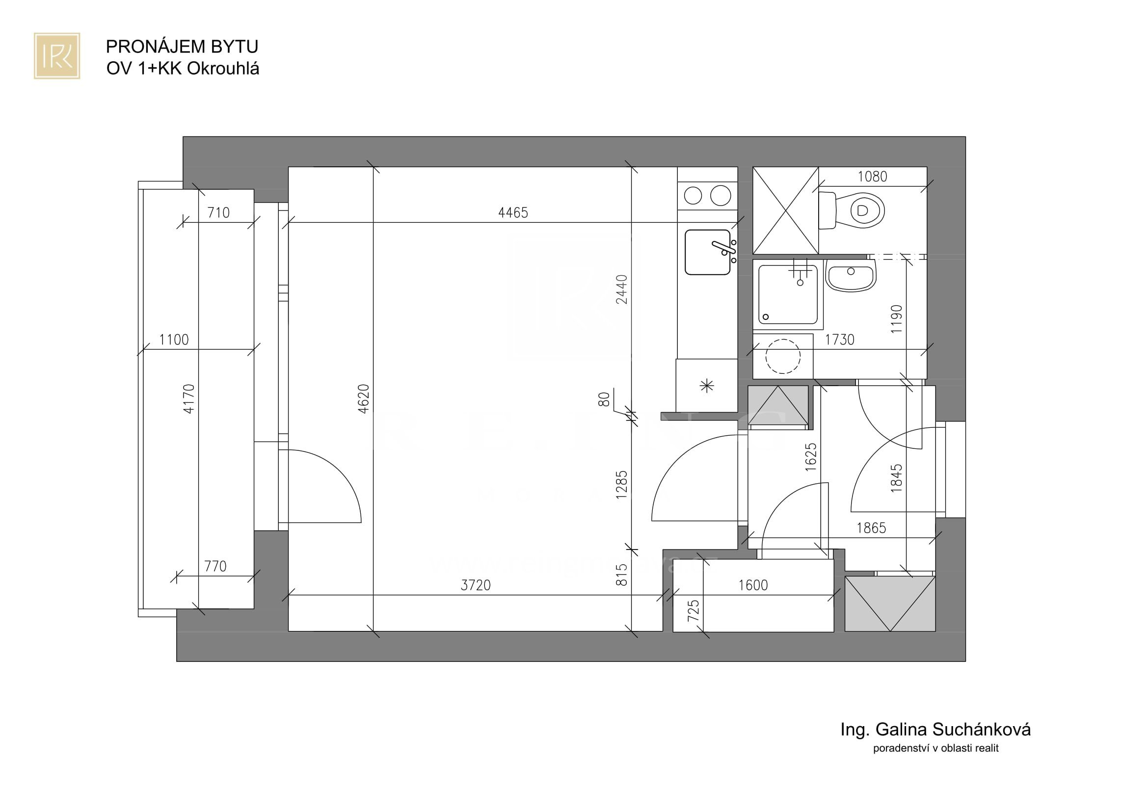 Pronájem OV 1+kk Okrouhlá Brno s balkonem