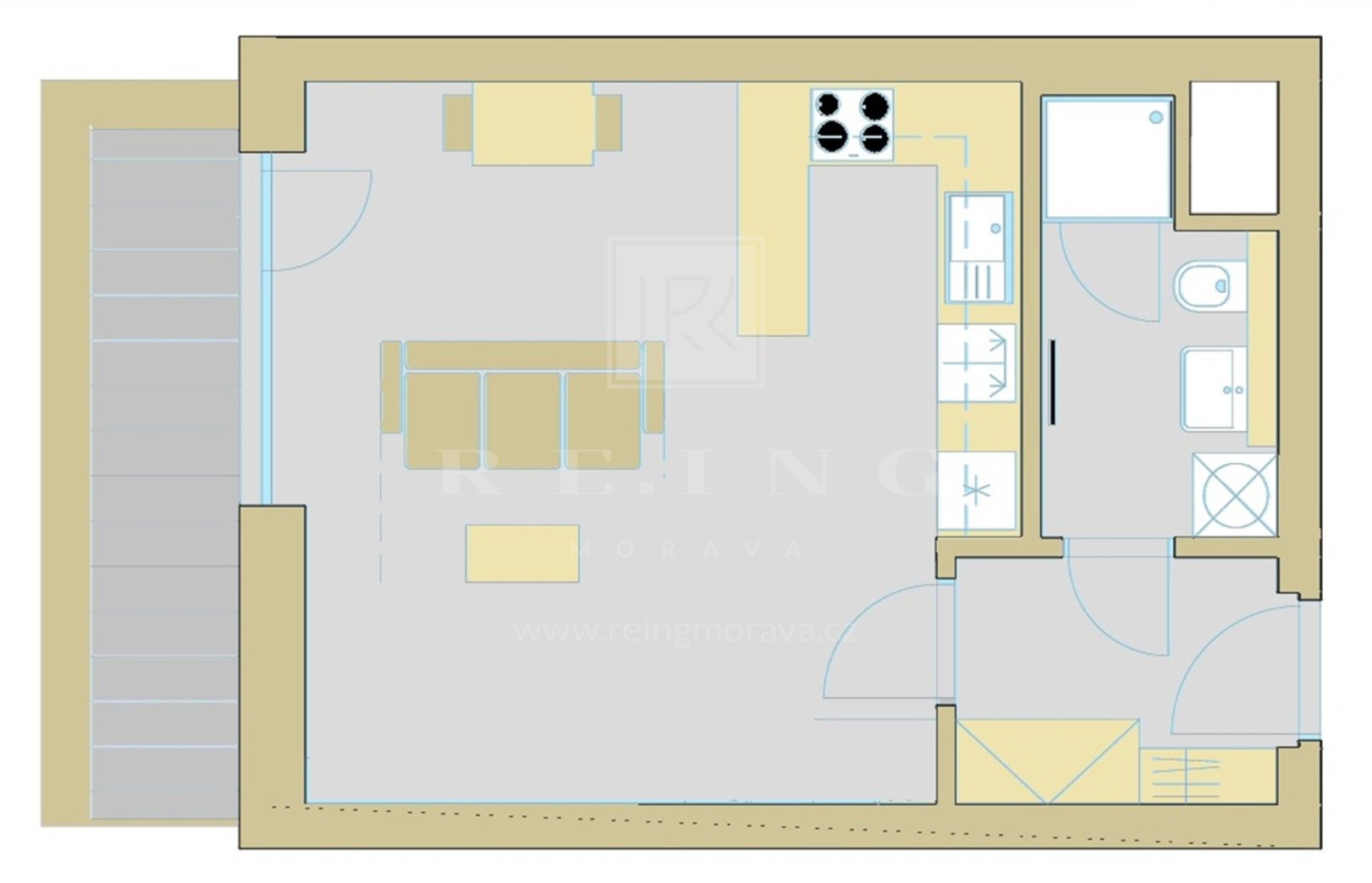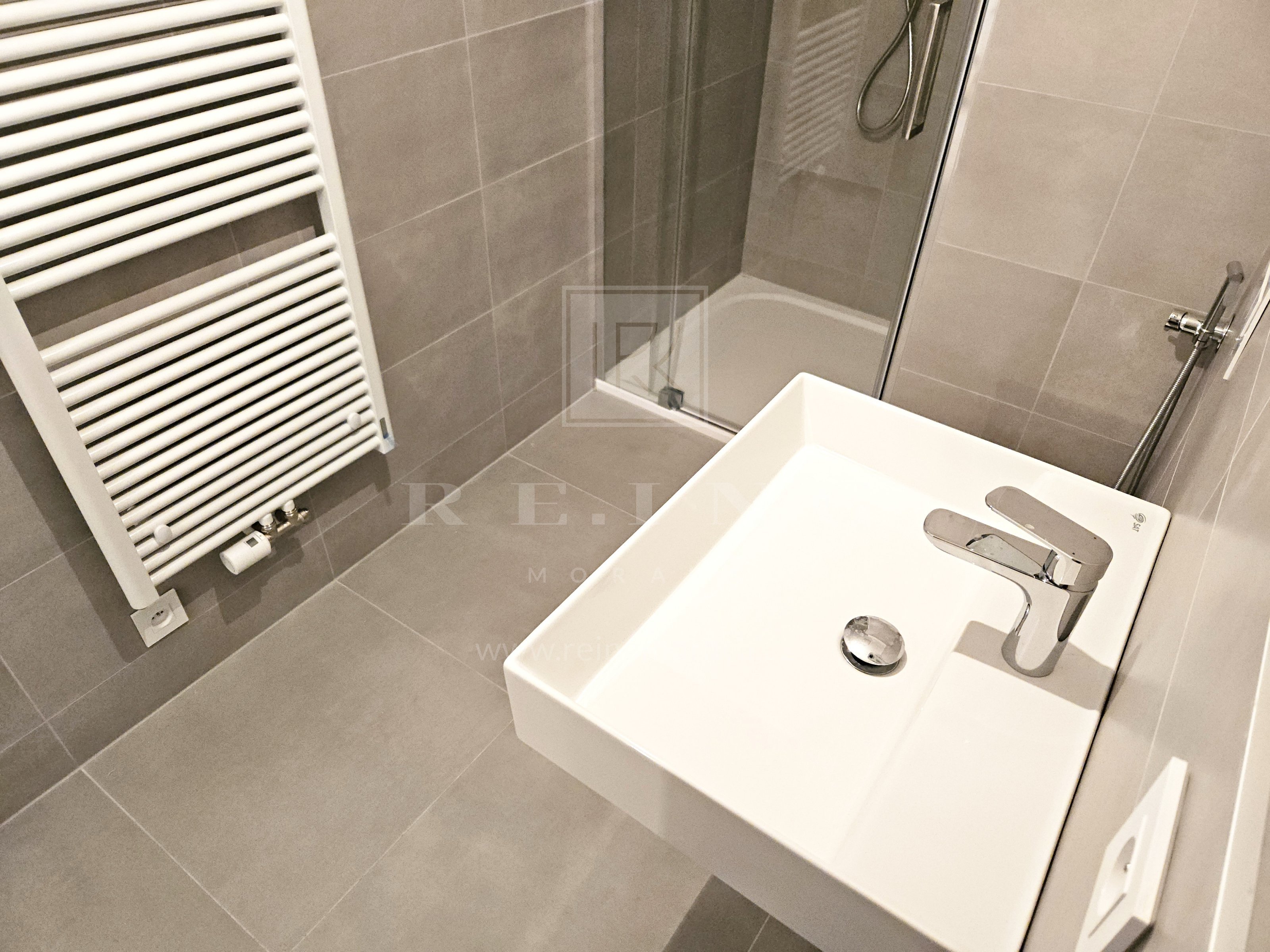 CHCETE BYDLET V NOVÉM BYTĚ? A být prvním nájemcem? Potom je to byt právě pro Vás. Jedná se o novostavbu bytu s terasou a garážovým stáním. Dispozice: vstupní předsíň, koupelna společná s WC, velký obytný pokoj s francouzským oknem vedoucím na terasu s příjemnou západní orientací. Vybavení: kuchyňská linka s vestavnými spotřebiči (sklokeramická varná deska, el. trouba, digestoř, myčka). Její vizualizaci si můžete prohlédnout ve fotogalerii.V předsíni bude skříň s věšákovou stěnou na míru. Okna budou vybavena žaluziemi a sítí proti hmyzu. Teplotní komfort Vám zajistí klimatizace. V koupelně je prostor pro umístění pračky i sušičky. K dispozici je také společná kolárna v domě. Lokalita nabízí kvalitní sportovní a relaxační zázemí. Prohlídky možné po domluvě. Pronajímatel si vyhrazuje právo zvolit nájemce na základě jím zvolených kritérií. Požaduje jistotu ve výši 2 nájmů. Provize ve výši 1 nájmu + DPH. Cena garážového stání není zahrnuta v ceně nájmu bytu. Bližší informace a prohlídku Vám ráda zajistí Galina Suchánková.