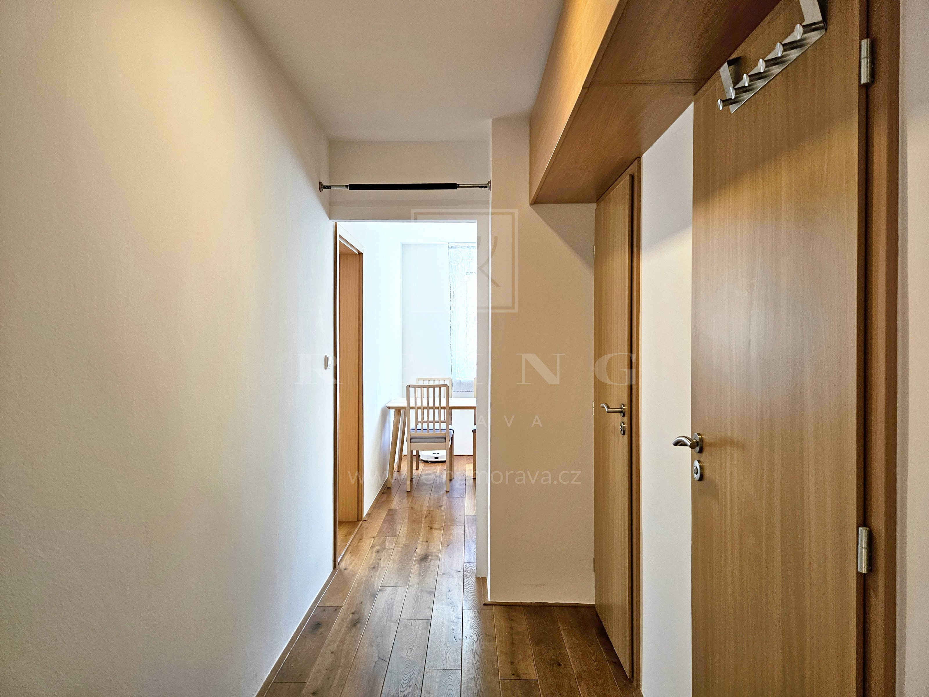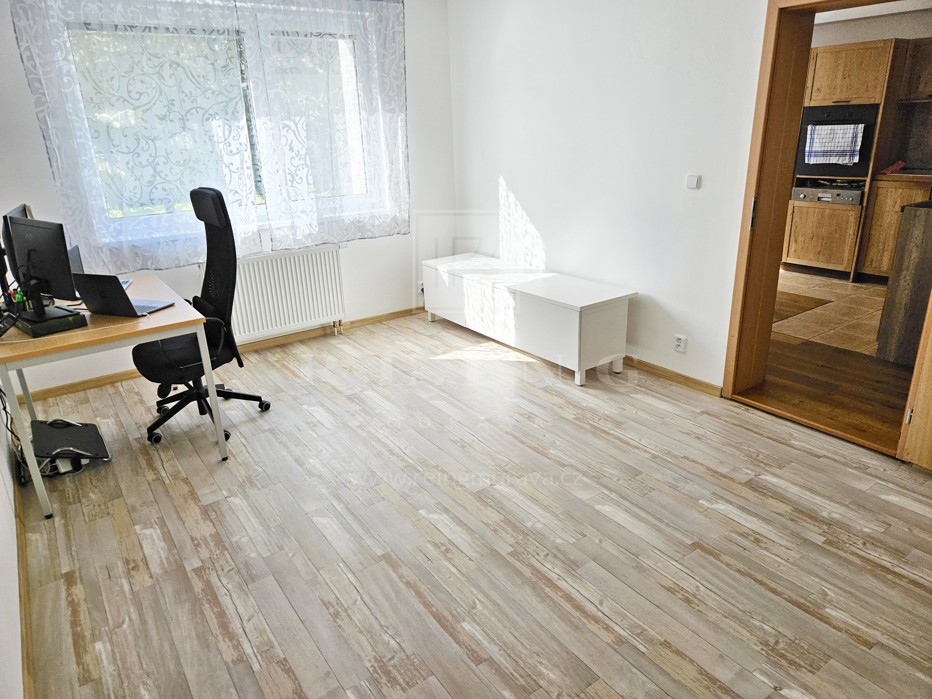 Moderní byt v zeleni u lesa - klidné bydlení s veškerým komfortem. Nabízíme k pronájmu světlý byt umístěný v přízemí nízkopodlažního domu v klidné lokalitě obklopené zelení, jen kousek od lesa. Byt má bezbariérový vstup a bezpečnostní vchodové dveře. Dispozice: samostatné neprůchozí pokoje čtvercová kuchyň předsíň a chodba oddělená koupelna a toaleta Vybavení a výhody: částečně zařízený byt kuchyňská linka se spotřebiči ( trouba, varná deska, mikrovlnka, lednice s mrazákem) + jídelní stůl se židlemi dostatek úložného prostoru (skříně v předsíni i ložnici) koupelna s vanou a místem pro pračku i sušičku úsporné LED osvětlení, žaluzie, sítě v oknech, závěsy vlastní vytápění i ohřev vody vysokorychlostní internet 100 Mbit v ceně Další benefity: prostorný sklep výhled do zeleně bezproblémové parkování u domu dobrá občanská vybavenost autobusové i vlakové spojení Podmínky: vratná jistota ve výši 2 nájmů provize RK: 1 nájem + DPH majitel si vyhrazuje právo výběru nájemce Bližší informace a prohlídku Vám ráda zajistí Galina Suchánková.
