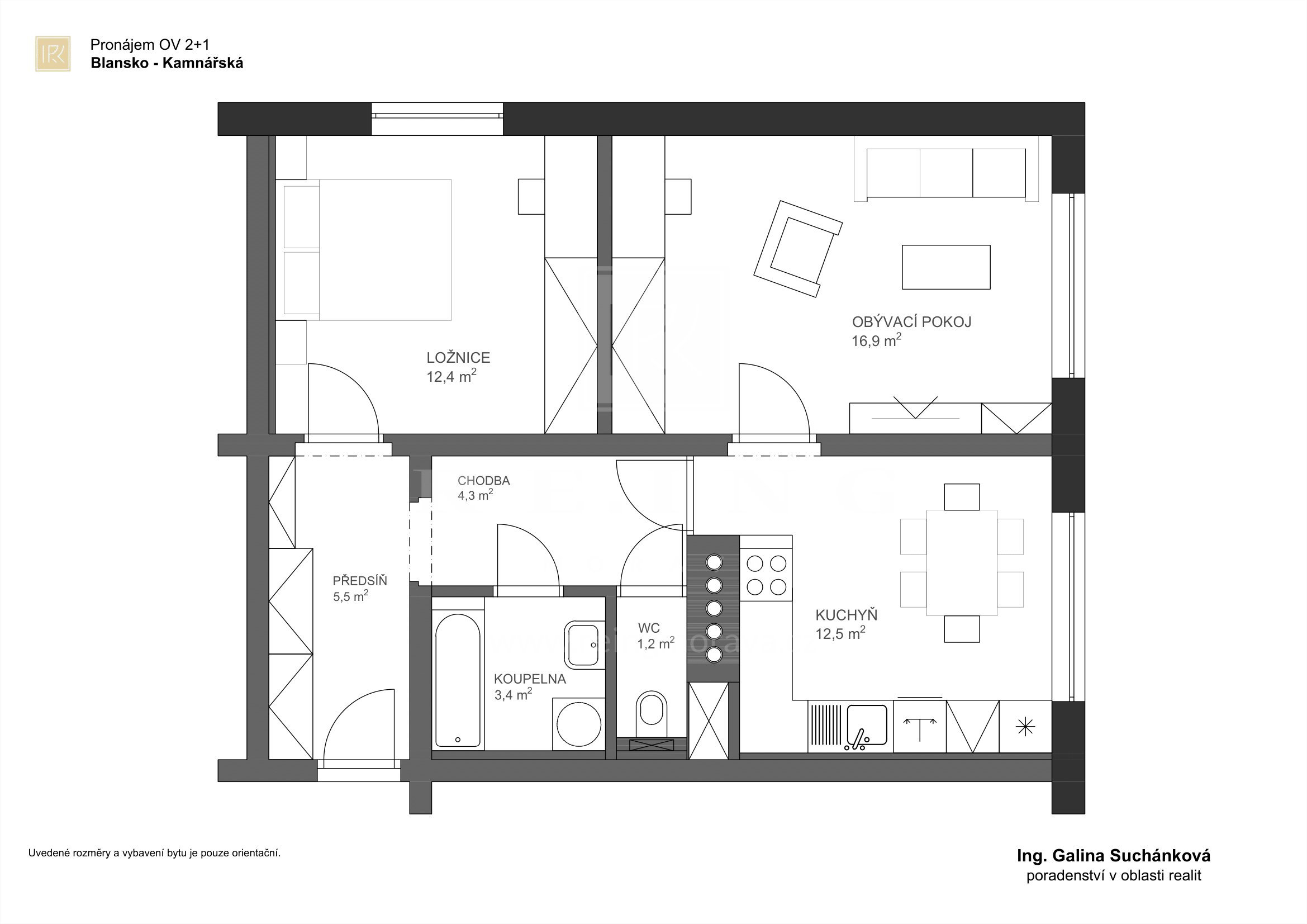 Pronájem OV 2+1 Blansko s rohovou kuchyňskou linkou